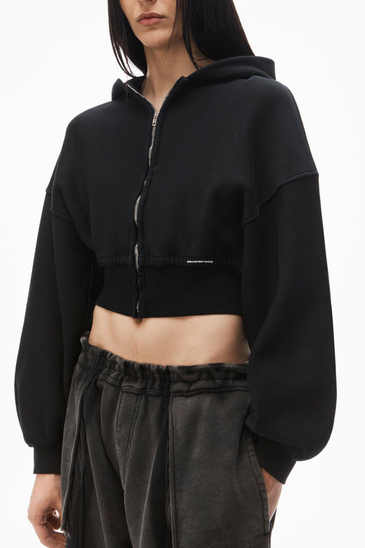 CROPPED ZIP UP HOODIE WITH BRANDED SEAM LABEL