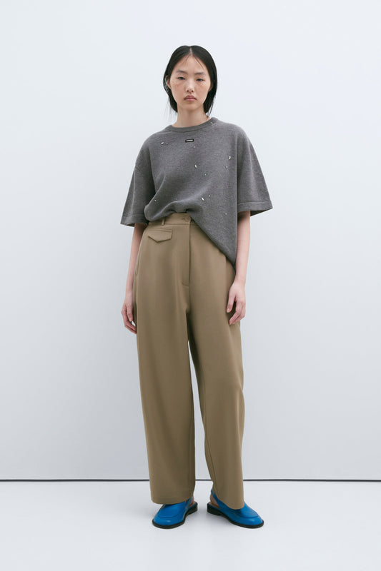 MERINO WOOL BEADED T-SHIRT GREY