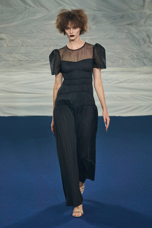 SHORT SLEEVES BUSTIER LONG DRESS