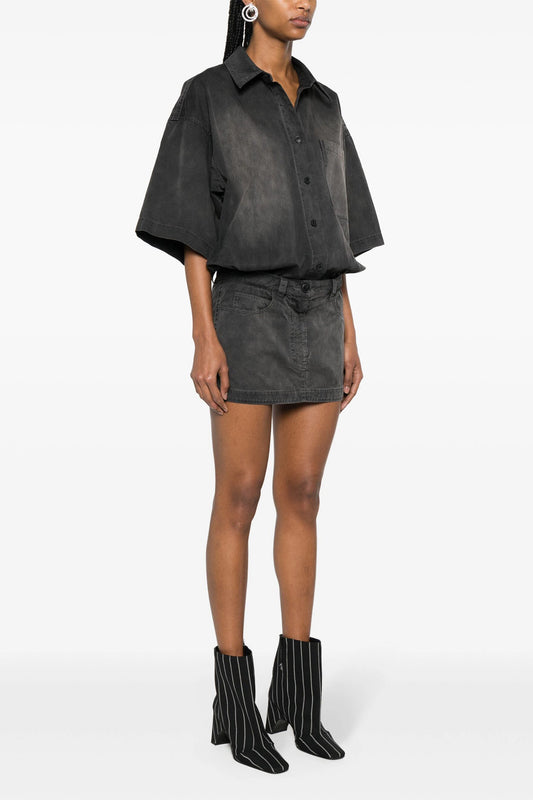 SHORT SLEEVE PRESTYLED MINI SHIRT DRESS