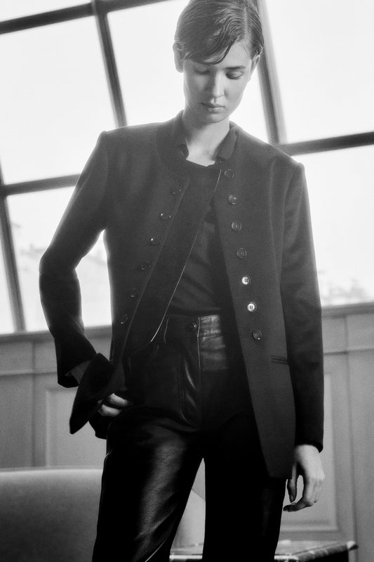 THE LARA BLAZER CASHMERE AND SUEDE BLACK