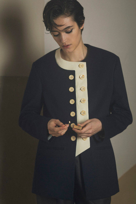 THE LARA BLAZER CASHMERE NAVY AND IVORY