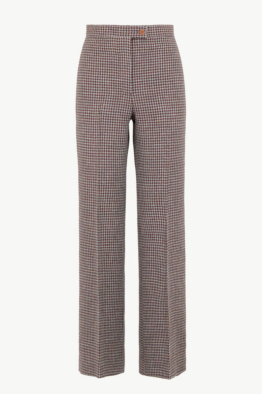 THE LAURA TROUSERS WOOL HOUNDSTOOTH HUNTER GREEN AND BERRY RED