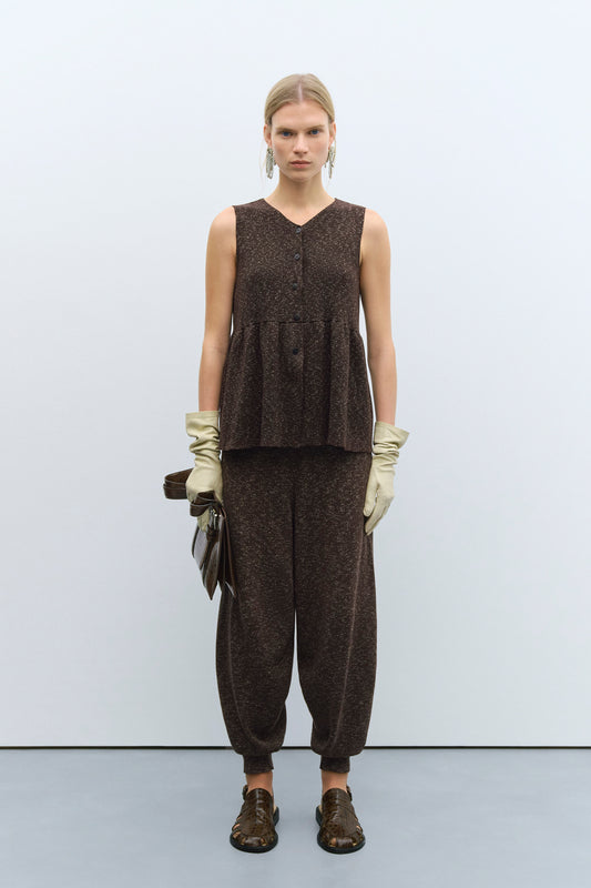 FLECKED COTTON PANTS BROWN