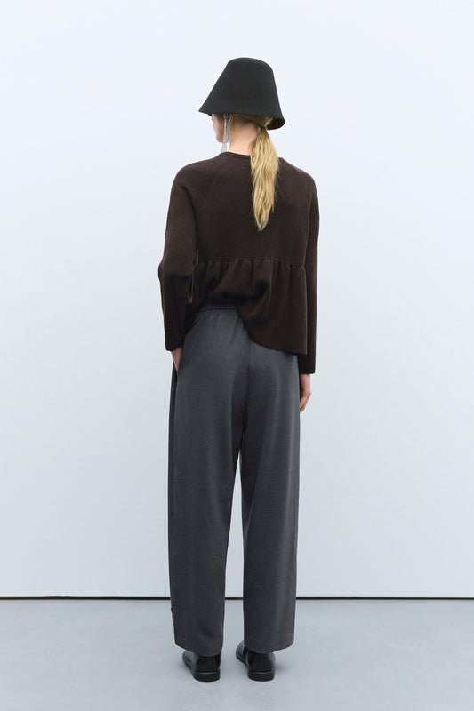 FLECKED COTTON PEPLUM TOP BROWN