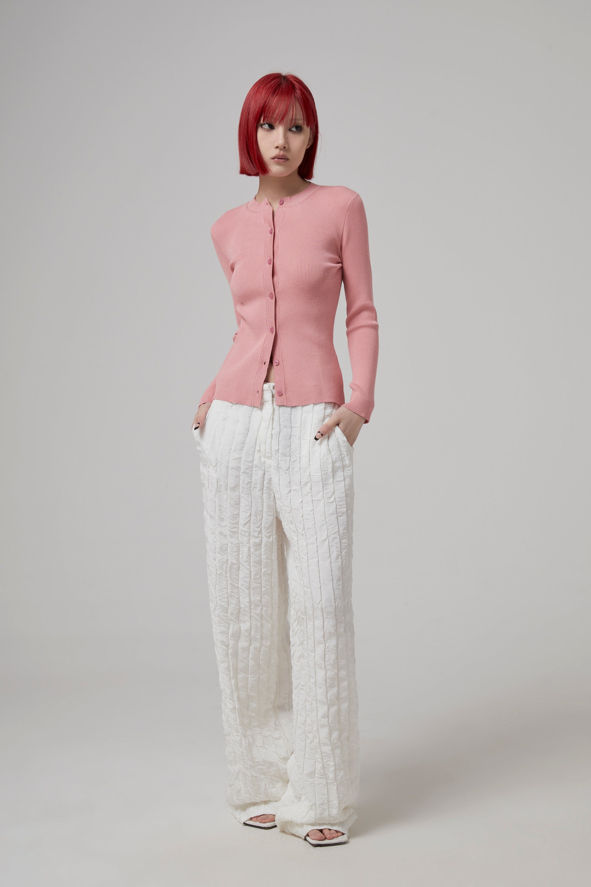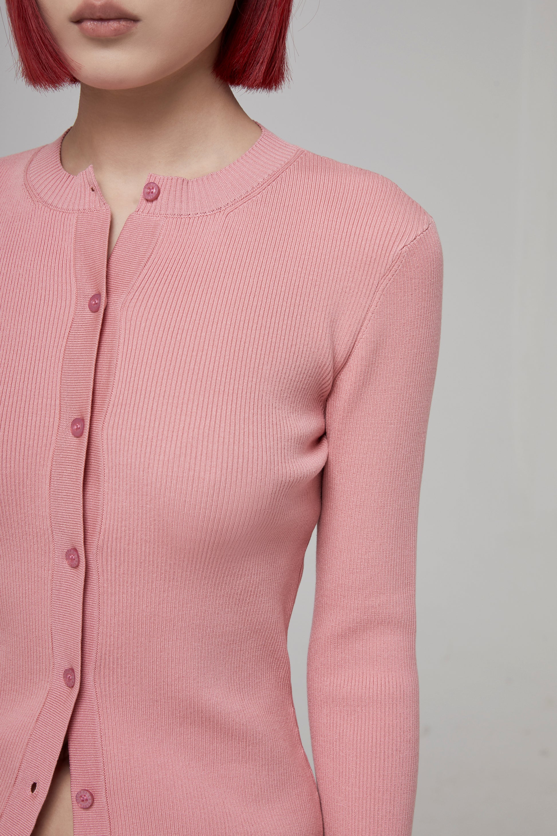 LONG SLEEVE RIBBED BUTTON FRONT CARDIGAN