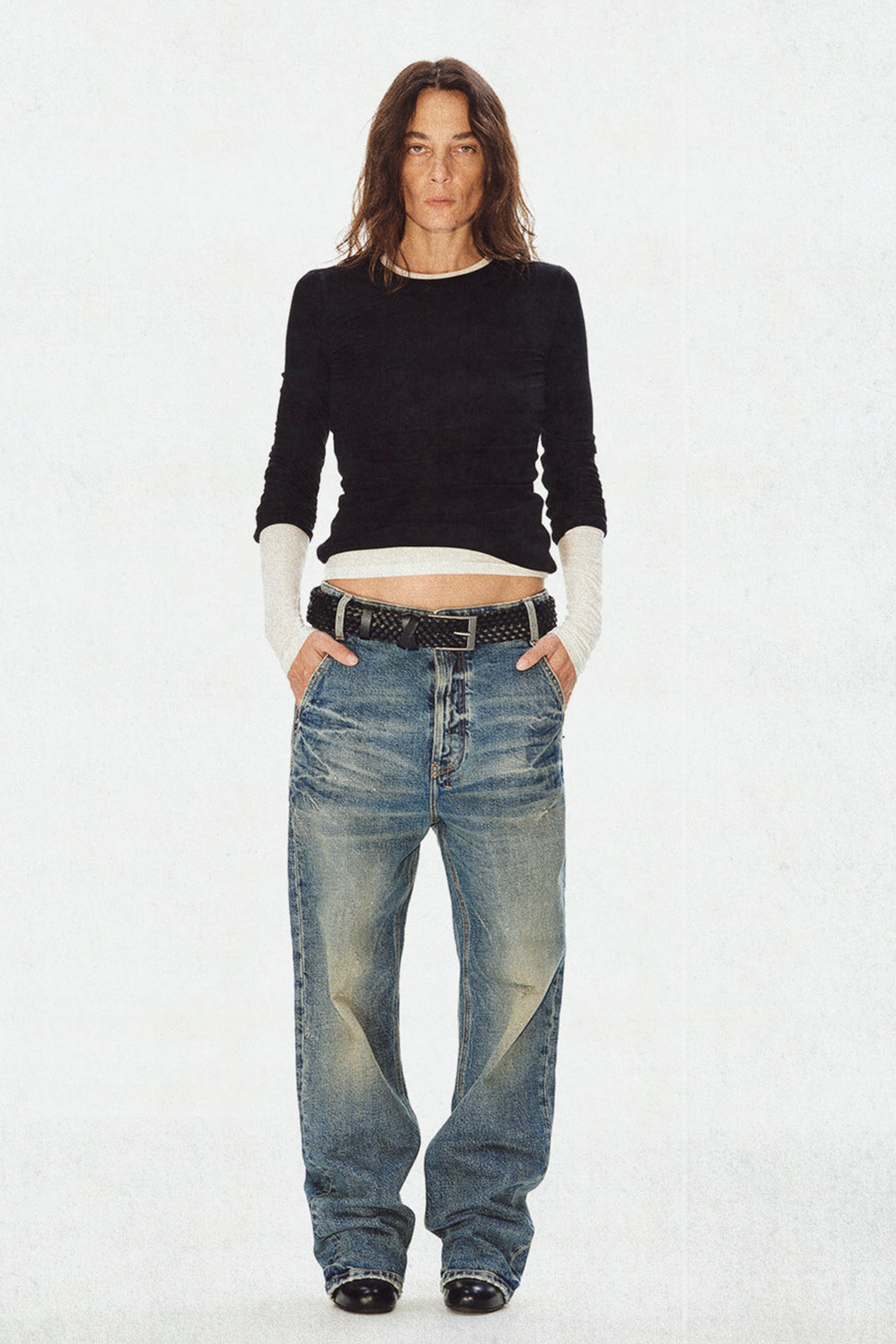 333做旧水洗直筒牛仔裤